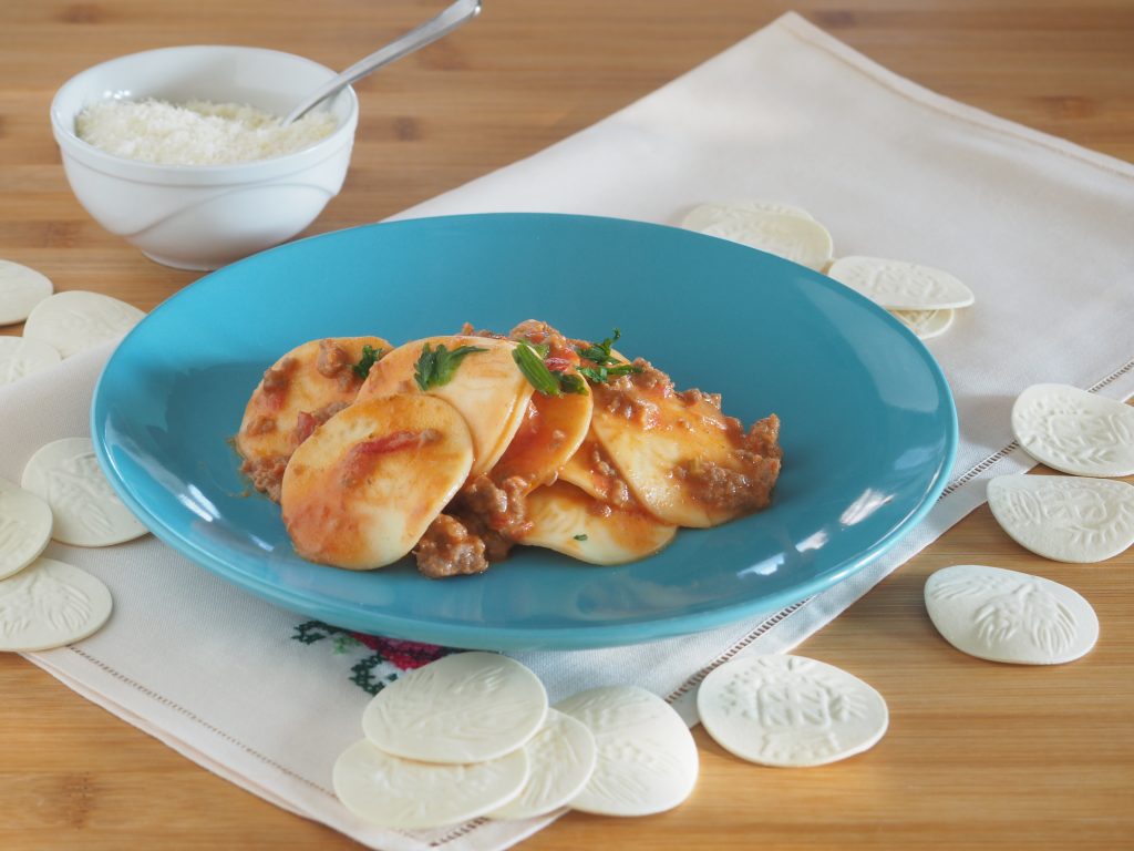Die Corzetti haben einen sehr delikaten Geschmack, deshalb habe ich eine Sauce mit kräftigem Geschmack bevorzugt.