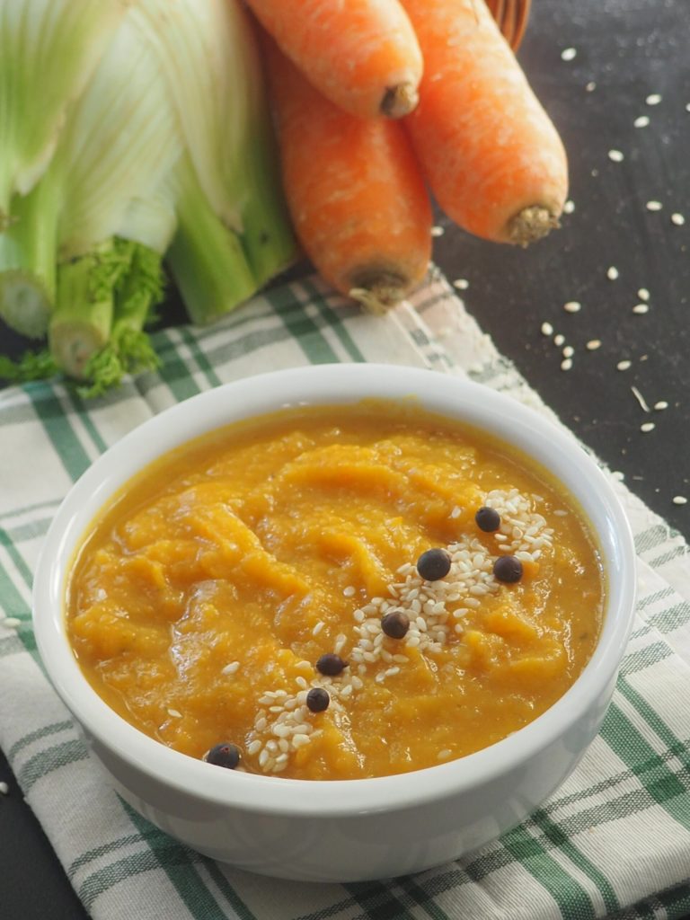 Hier ist ein leichtes Rezept, ideal für eine gesunde Ernährung nach den Feiertagen. Die Cremesuppe aus Fenchel, Karotten und Kartoffeln ist auch lecker und hat einen Hauch von Gewürzen, der sie noch spezieller macht. Wenn Sie möchten, können Sie die Gewürze weglassen, obwohl sie meiner Meinung nach einen zusätzlichen Geschmack verleihen.