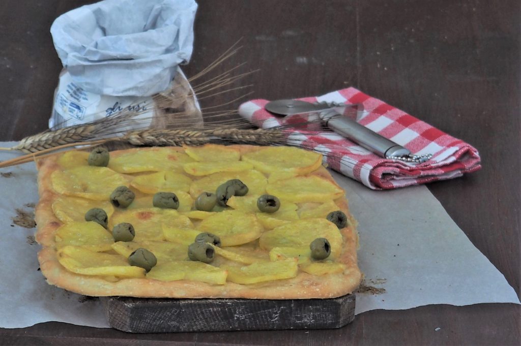 Die Focaccia mit Kartoffeln und grünen Oliven ist ein weicher Snack, ideal als Zwischenmahlzeit für Ihre Kinder oder um sie an einem Abend mit der Familie oder im Freundeskreis zu genießen.