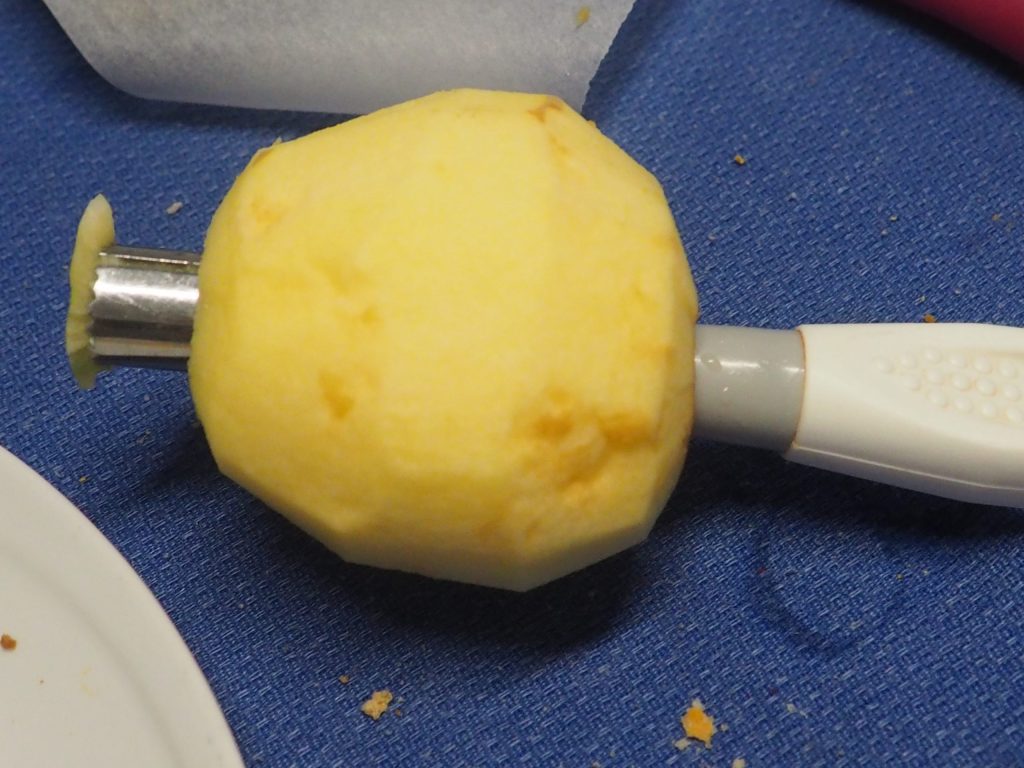 Schälen Sie die Äpfel, entfernen Sie das Kerngehäuse mit dem passenden Werkzeug.