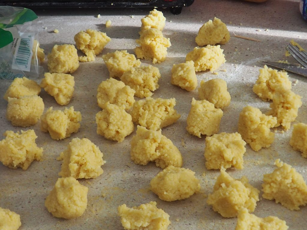 Während der Zubereitung der Couscous-Gnocchi immer die Hände anfeuchten, um zu vermeiden, dass der Teig an den Fingern kleben bleibt.