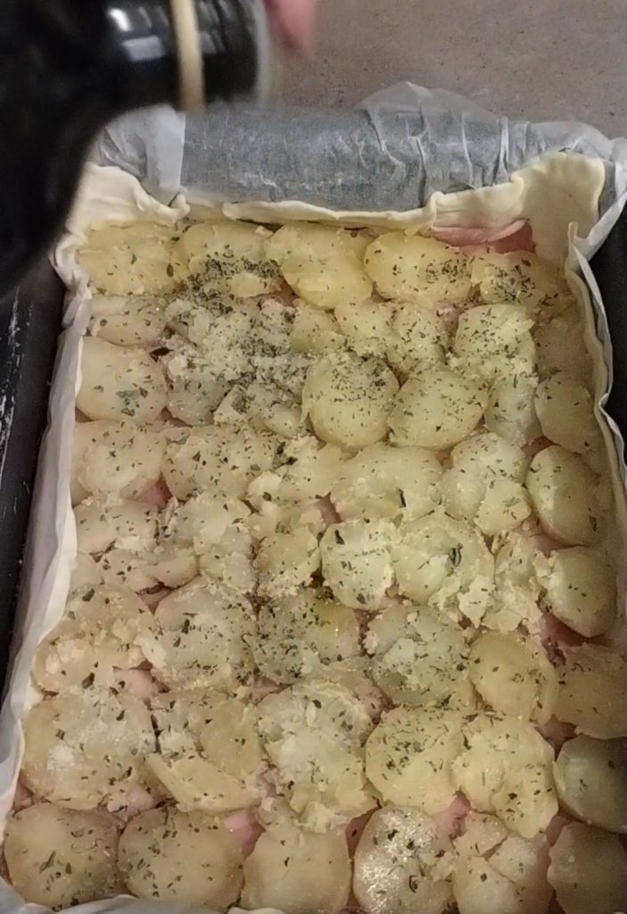 Legen Sie nun die gekochten Kartoffelscheiben oben drauf.