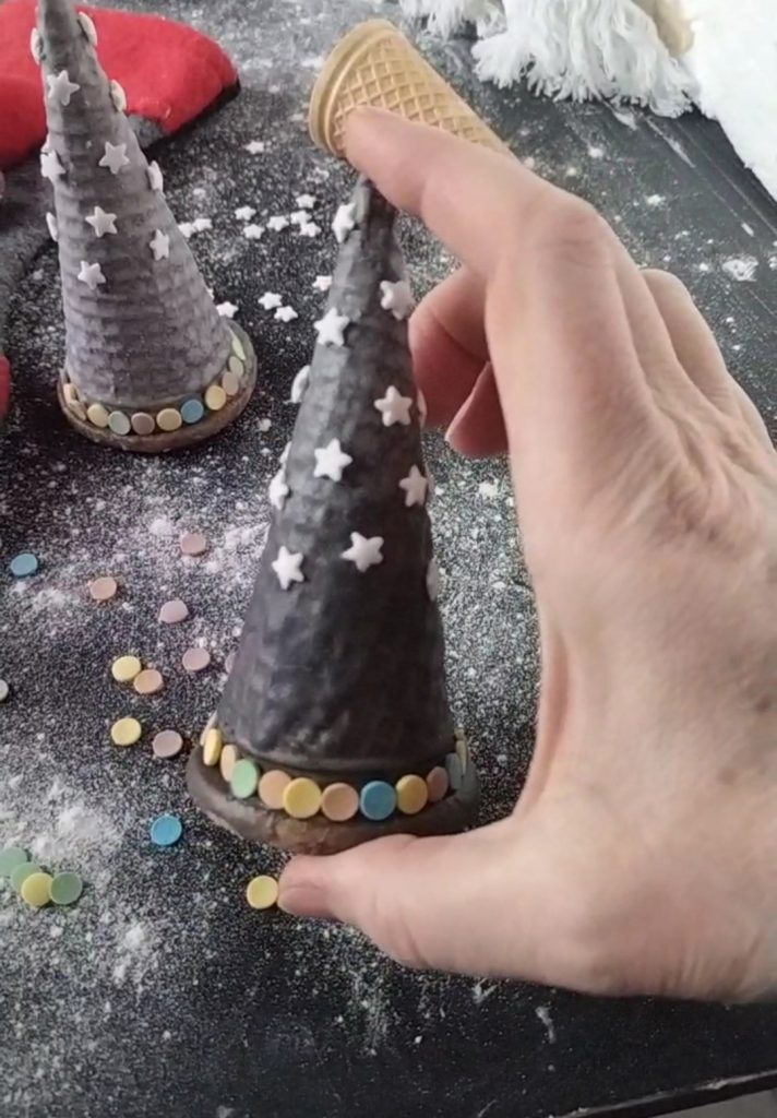 Wenn der Eiswaffel austrocknet und die Zuckerperlen nicht haften, empfehle ich, die Oberfläche erneut mit Glasur zu bestreichen.