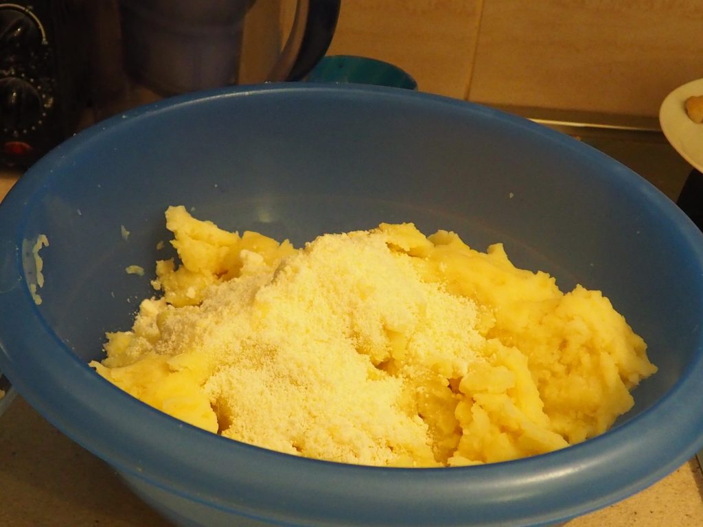 Die Kartoffeln abgießen, leicht in kaltem Wasser abkühlen lassen, schälen und mindestens zweimal durch die Kartoffelpresse drücken, um eine glatte und nicht körnige Masse zu erhalten.
