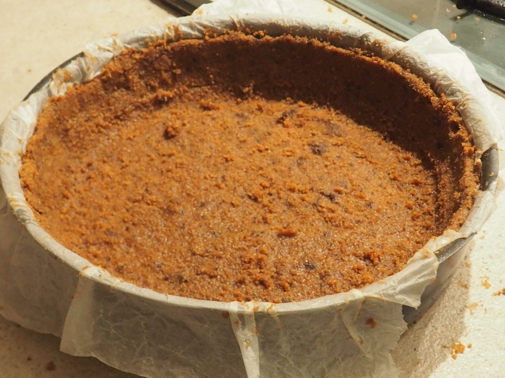 Gießen Sie nun die Mischung in die Kuchenform über den Keksboden. Lassen Sie es im Kühlschrank für mindestens drei bis vier Stunden fest werden.