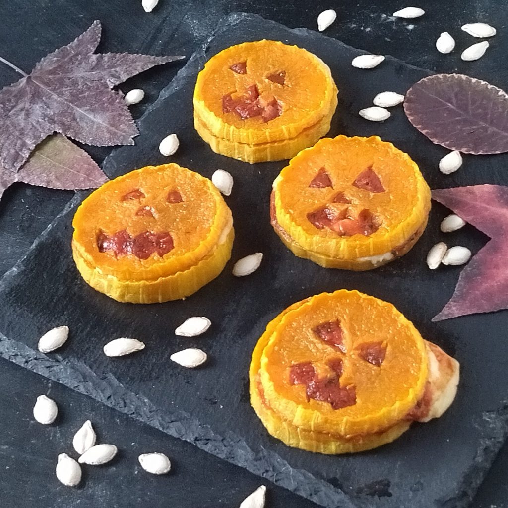 Ein leckeres Halloween-Aperitif? Ich schlage die Kürbisgesichter mit Pizzageschmack (Halloween) vor, ein wirklich leckeres Gericht, ideal auch für Kinder, die vielleicht nicht so gerne Gemüse mögen.