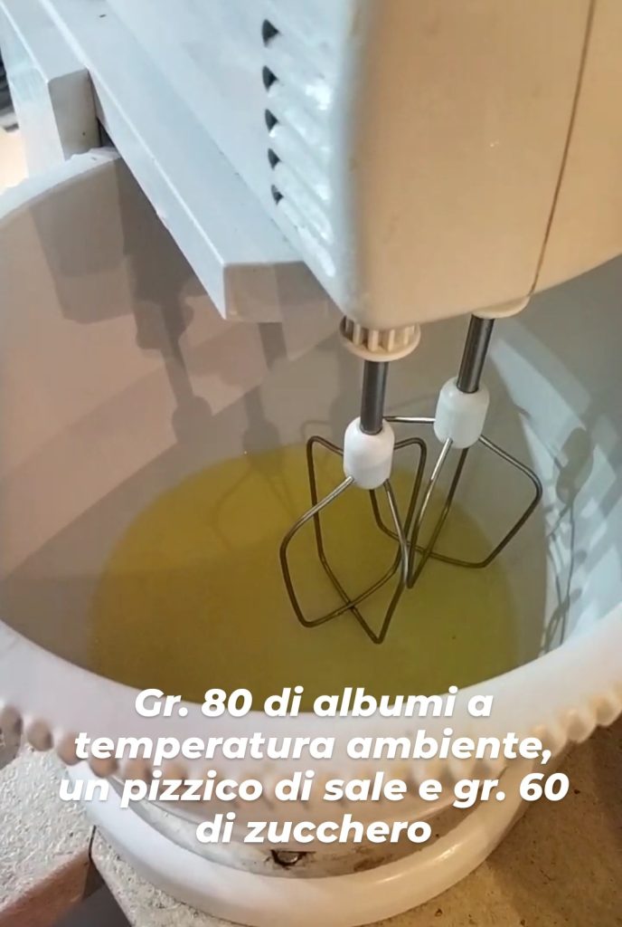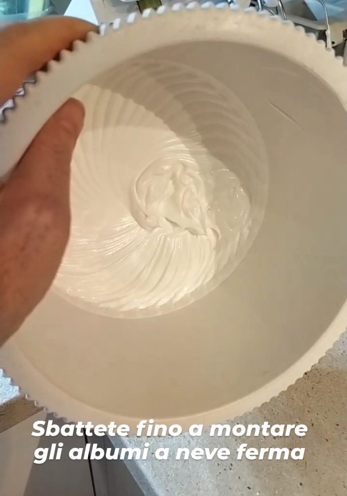 Schlagen Sie die Eiweiße, bis sie steif sind.