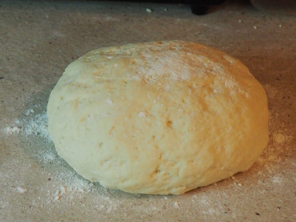 Bestäuben Sie das Brett mit etwas Mehl, platzieren Sie die Teigkugel darauf, bedecken Sie sie mit einem sauberen Tuch und lassen Sie sie etwa 30 Minuten ruhen.