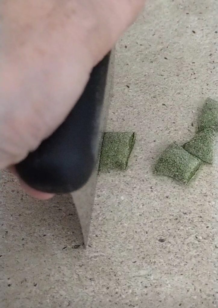 • Schneiden Sie kleine Stücke ab, je nach Geschmack größer oder kleiner.