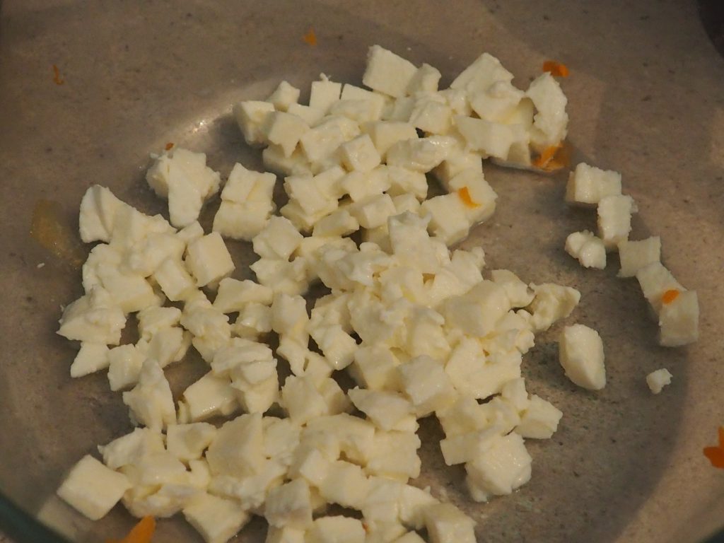 • Die Mozzarella in ziemlich kleine Würfel schneiden.