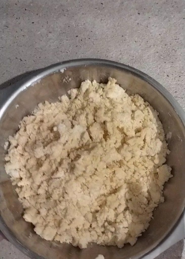 Mischen Sie mit den Händen, bis eine sandige Konsistenz erreicht ist.