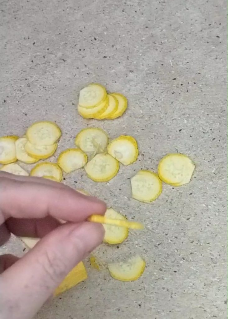 Waschen Sie die Zucchini und schneiden Sie sie mit einem Messer oder einer Mandoline in feine Scheiben.