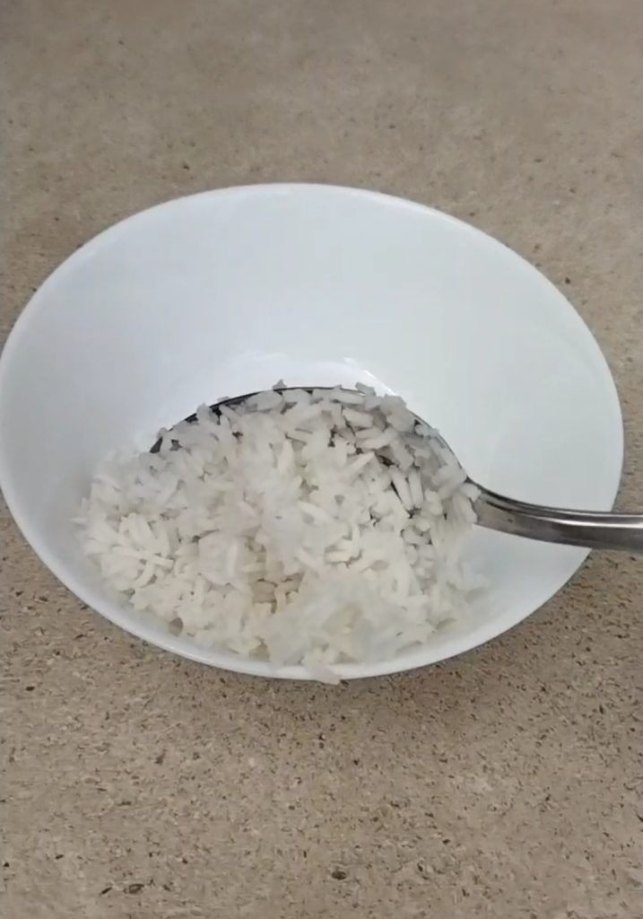 Sobald der Reis gekocht ist, gießt ihn mit einem Sieb ab und kühlt ihn mit kaltem Wasser herunter.