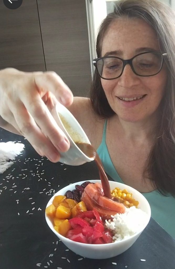 Bei dieser Hitze hat man immer weniger Lust zu kochen, diese Poke Bowl mit Reis, Lachs und Pfirsich ist wirklich frisch und ideal im Sommer. Ihr könnt den Pfirsich durch Wassermelone ersetzen und, wenn ihr mögt, Gurke hinzufügen, je nach Geschmack wird es immer super lecker sein, dank des Dressings, ein super leckeres Mix! Unten verrate ich euch die Zutaten, um eine Sauce zu kreieren, die euer Gericht bereichern wird.