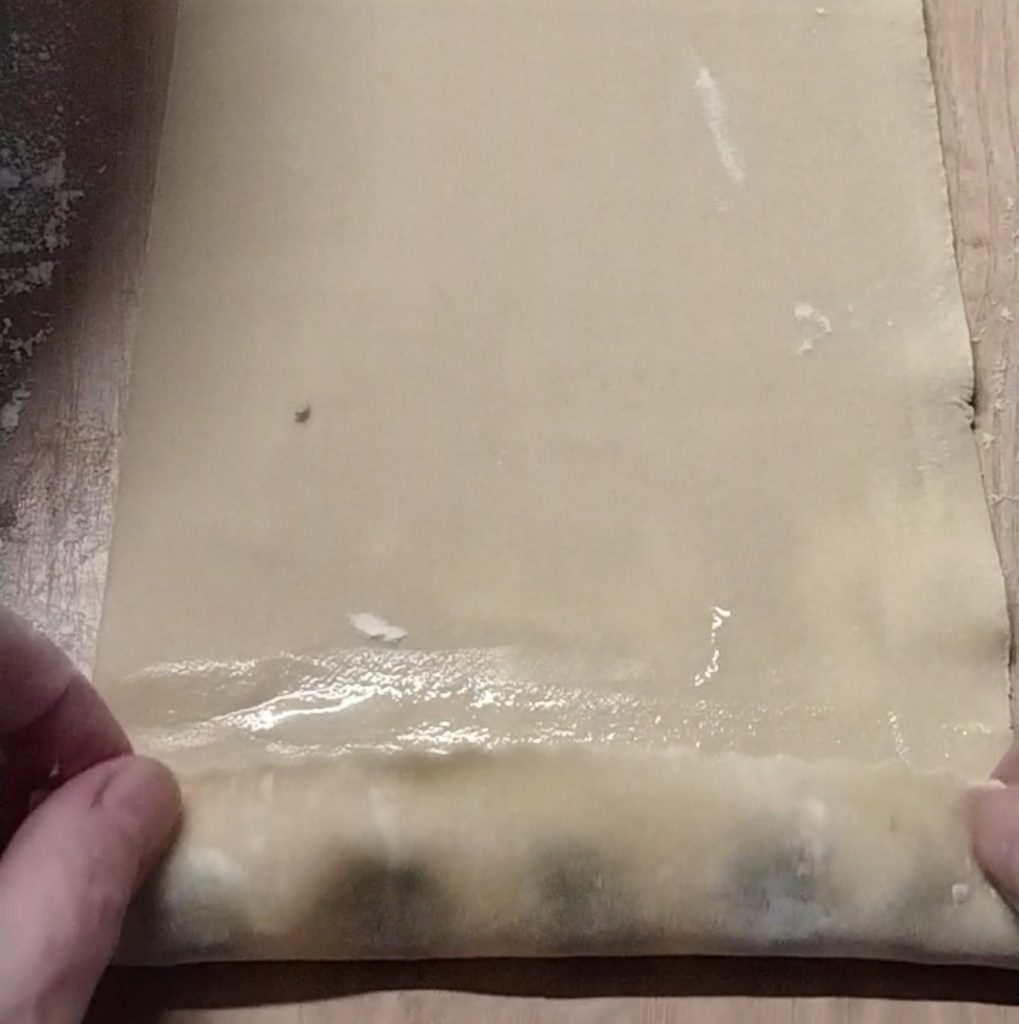 Ich empfehle, sie noch an den Seiten gut zu versiegeln, aber die Füllung nicht zu drücken, nur die Teigränder. Wenn euch Teig übrig bleibt, könnt ihr Tagliatelle machen.