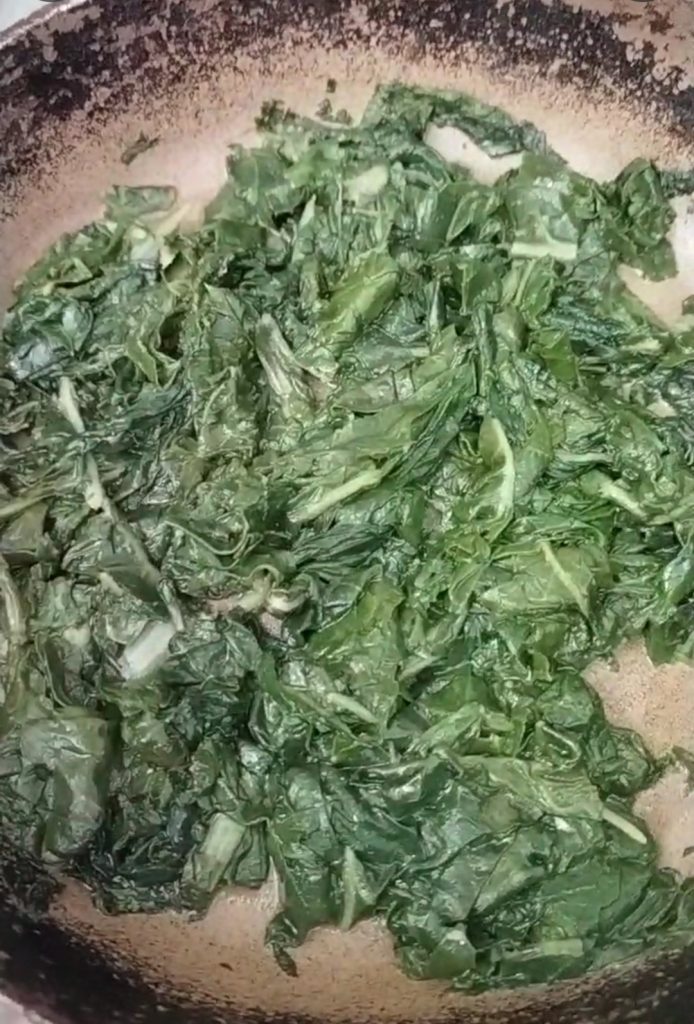 - 150 g gekochtes Gemüse (Mangold oder Spinat)