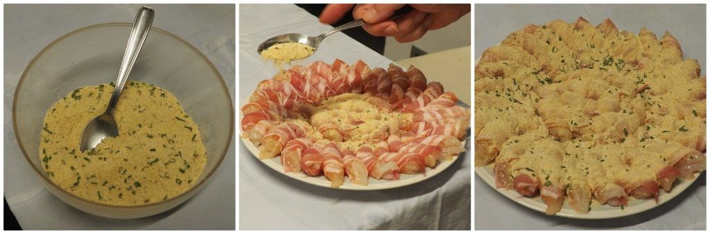 Riesengarnelen im Baconmantel mit Semmelbröseln