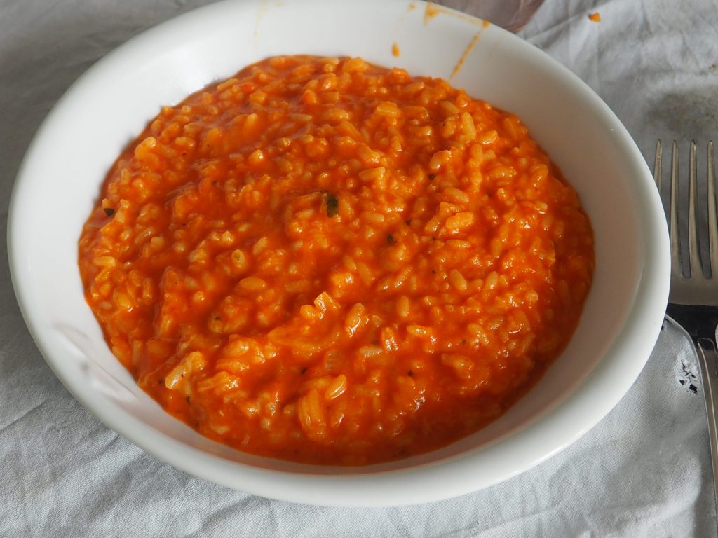 Der Risotto alla Pizzaiola ist ein erstes Gericht, das meinen Kindern sehr gefällt, schmelzend und schmackhaft, mit einem leichten Pizzageschmack, dank Oregano, Mozzarella und Tomatenpassata.