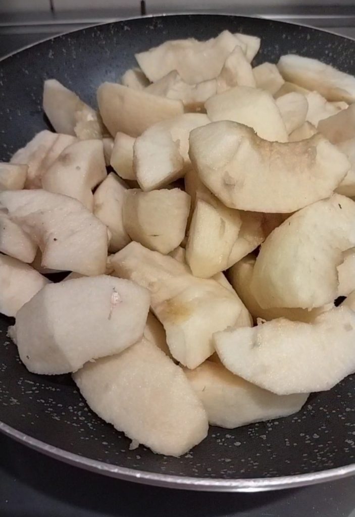 Ich habe etwas Vanillecreme (Crema pasticcera) verwendet, die von einem vorherigen Rezept übrig war; du kannst sie aber problemlos weglassen. Jetzt großzügig mit braunem Zucker bestreuen.