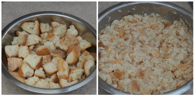 Wenn ihr sehr trockenes Brot verwendet, gebt etwas mehr Milch hinzu, um es weich zu machen.
