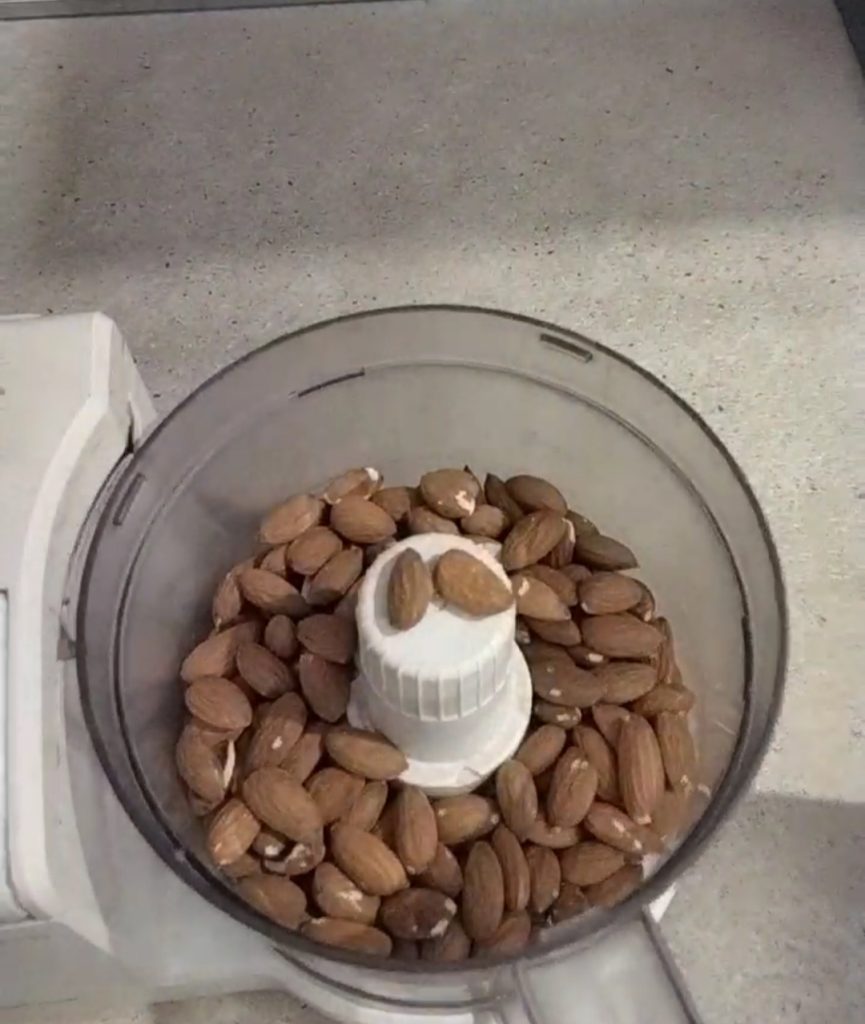 Mixen Sie sie, bis sie zu Mehl werden. Sie können sie auch etwas grob lassen, das gibt Ihrer Torte den Crunch-Effekt. Nun fügen Sie sie der Eimischung hinzu.