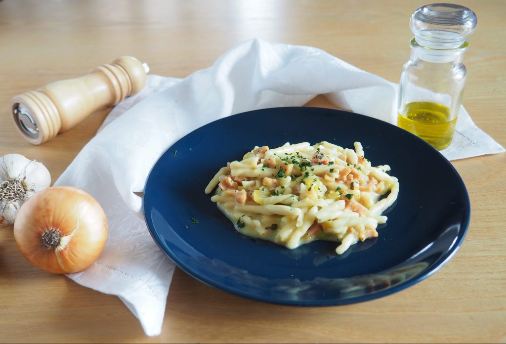 Ich habe für dieses Gericht Trofie verwendet, weil ich eine kleine Pasta wollte, die von der Stracchino-Creme umhüllt wird, aber man kann auch andere Formate wie Tortiglioni oder Mezze Penne verwenden.