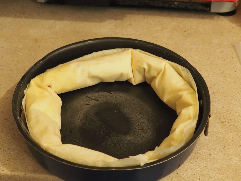 • Decken Sie nun alles mit zwei Blättern Filoteig ab.