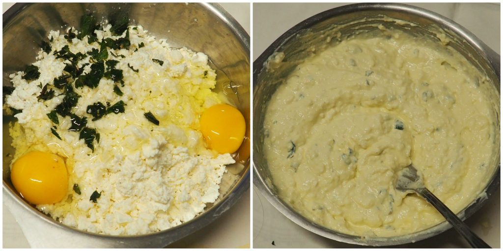 • Fügen Sie nun die Eier und die gehackte Minze hinzu.
