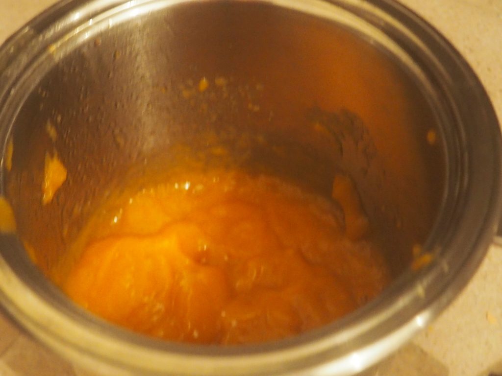 • Erhitzt die Milch in einem großen Topf, kurz bevor sie kocht, gießt die Eimasse hinein und wartet, bis sie wieder kocht. Ihr werdet sehen, dass es wie ein Vulkan aus dem Topf aufsteigt, jetzt mischt mit dem Schneebesen, bis die Masse eindickt, macht weiter für einige Minuten, bis ihr eine glatte Masse erhaltet.