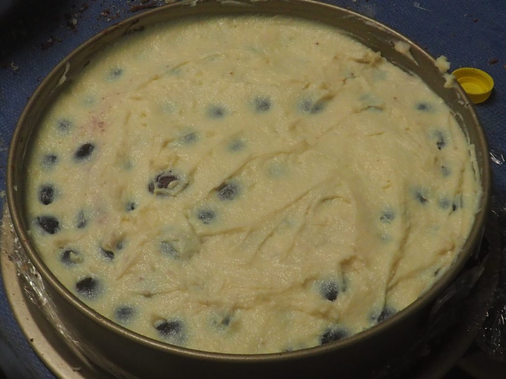 • Bedeckt den Boden einer Springform mit einem Durchmesser von 25 cm mit Frischhaltefolie. Legt nun die entkernten und halbierten Kirschen auf den Boden, so dass ein Muster nach eurem Geschmack entsteht. Ich habe die Zahl 79 geschrieben, da der Kuchen für die Geburtstagsfeier zum 79. Geburtstag meiner Mutter war.