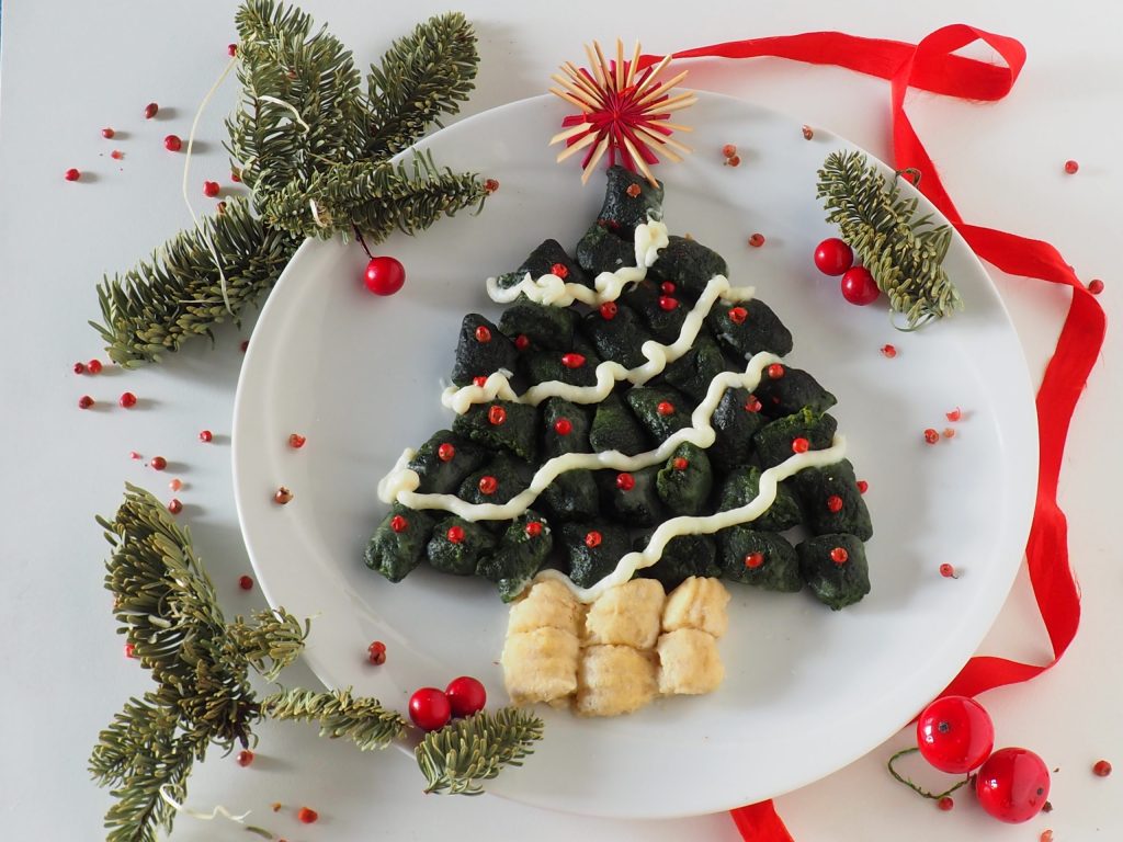 Die weihnachtlichen Spinat-Gnocchi sind einfach eine Art, das Gericht in Form eines Weihnachtsbaums zu präsentieren. Die Idee entstand aus dem Wunsch, diesen ersten Gang auf ungewöhnliche Weise zu servieren. Probieren Sie es aus, wenn Ihnen die Idee gefällt!