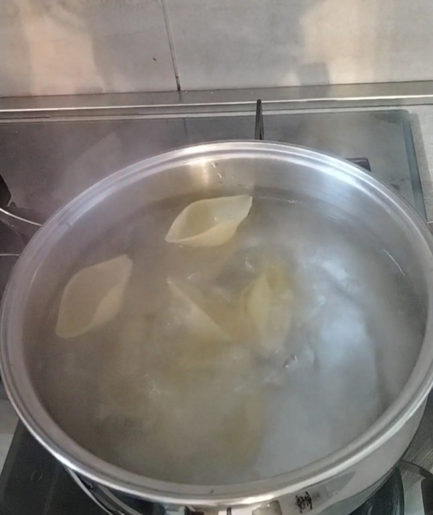 Geben Sie reichlich Wasser in einen großen Topf, sobald es kocht, fügen Sie zwei Teelöffel grobes Salz und die Conchiglioni hinzu. Kochen Sie sie ein paar Minuten weniger als die auf der Packung angegebene Garzeit.