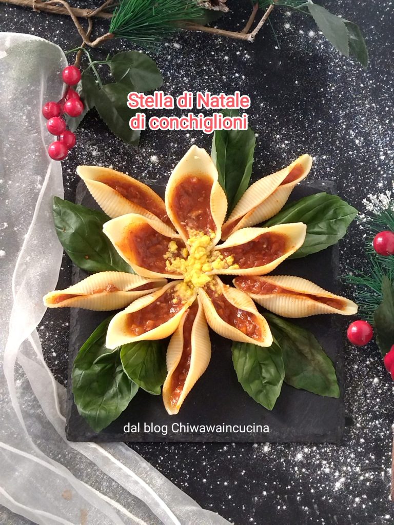 Ihr Weihnachtsstern aus Conchiglioni ist fertig! Und wie bevorzugen Sie ihn, serviert auf einem weißen oder schwarzen Teller?