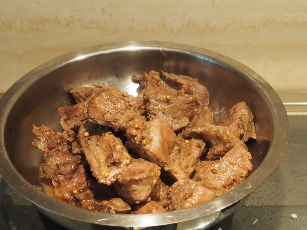 Normalerweise marinieren wir das Wildschwein nicht, da es einen Monat im Gefrierschrank verweilt, verschwindet der wilde Geruch.