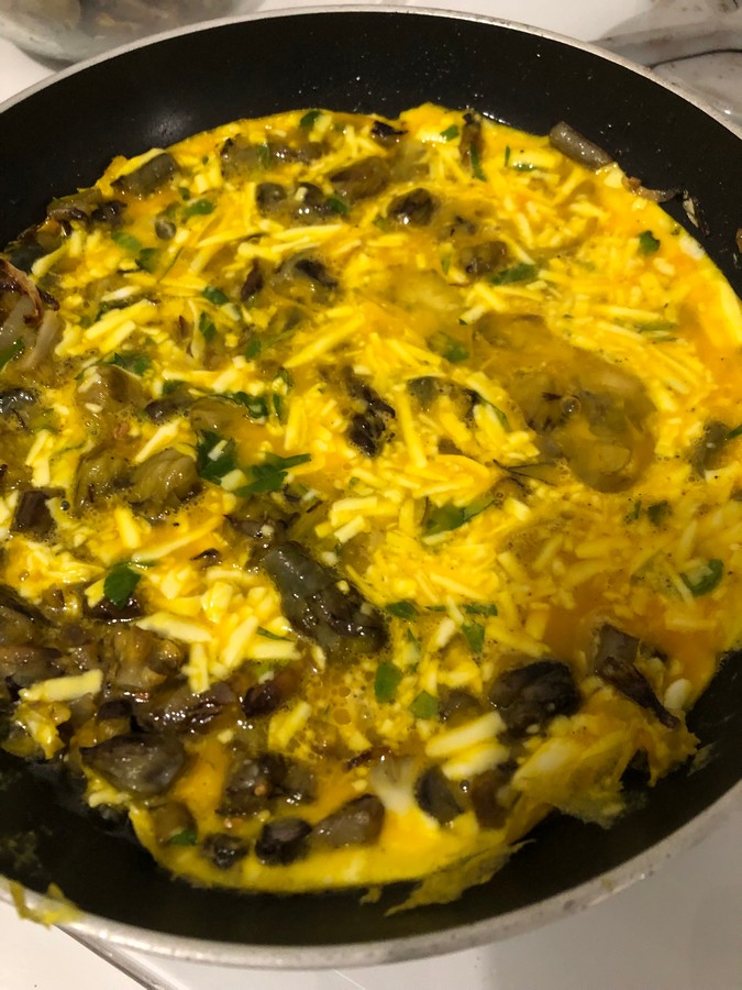 • Wir schlagen die Eier mit einem Schneebesen, damit sie gut vermischt sind. In einer Pfanne geben wir 4 Esslöffel Olivenöl und die gehackte Zwiebel, lassen sie braten und fügen die sporchia hinzu. Wir salzen leicht und braten sie an. Nach etwa fünf Minuten geben wir die Eier hinzu, die gehackte Minze und lassen das Omelett zuerst auf der einen Seite kochen, während wir einige Orobanche-Spitzen zur Dekoration hinzufügen und das Omelett wenden, um es auf der anderen Seite zu garen. Wenn wir es herausnehmen, legen wir es auf ein Blatt Küchenpapier, damit das überschüssige Öl aufgesaugt wird. Servieren Sie es heiß!