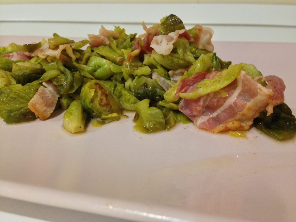 Rosenkohl hatte ich noch nie probiert, aber dann schlug mir mein vertrauenswürdiger Bauer vor, diese von ihm angebauten Rosenkohl zu probieren. Anders als die, die ich normalerweise auf dem Gemüsestand sehe, zeichnen sich diese Rosenkohl dadurch aus, dass sie nicht so perfekt sind wie alle Gemüse aus intensiver Landwirtschaft, tatsächlich sind sie weniger schön anzusehen, aber sicherlich schmackhafter. Also versuchte ich, sie mit geräuchertem Speck zu kochen und fügte etwas Paprika hinzu, um den leicht bitteren Nachgeschmack dieses Gemüses zu mildern. Einfach und schnell, diese Art der Zubereitung der Rosenkohl ist wirklich lecker und kann als Beilage zu einem Schweinebraten serviert werden.