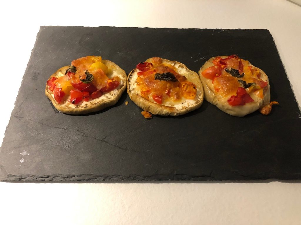 Weiße Aubergine, machen wir kleine Pizzen daraus