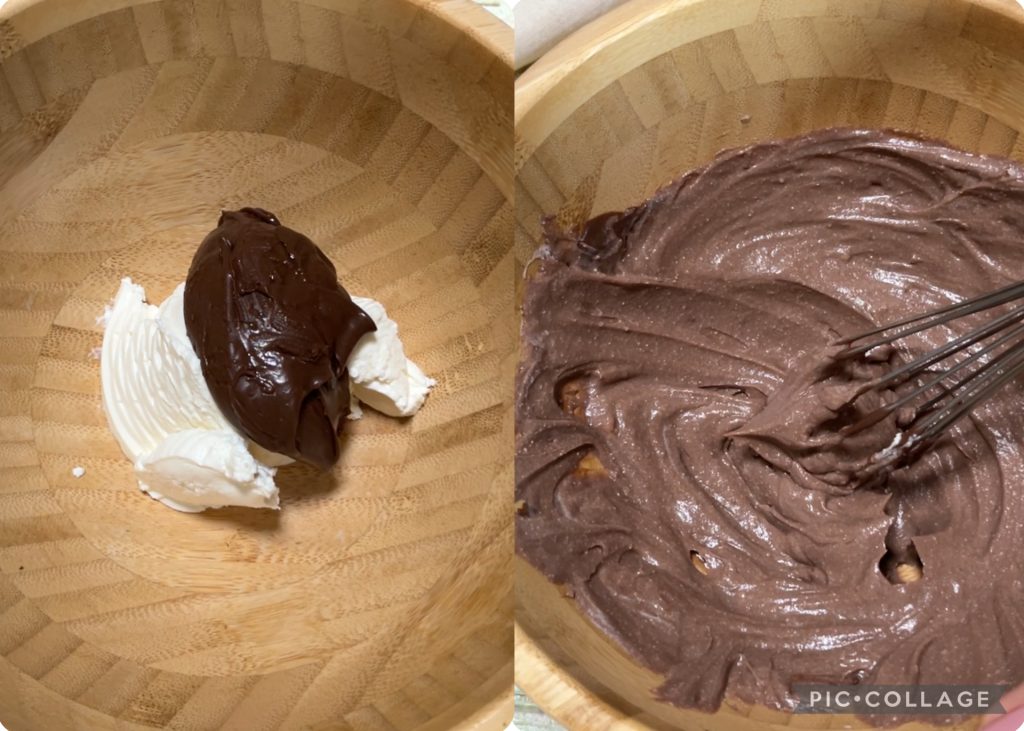 In einer Schüssel vermengen wir den Ricotta mit der Nutella, bis eine glatte Creme entsteht.