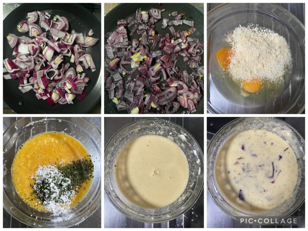 Das OMELETT MIT ROTEN ZWIEBELN ist ein leckeres und herzhaftes Abendessen. Sie können es sowohl warm als auch kalt genießen, zu jeder Jahreszeit, und es ist perfekt, um Sandwiches, Tramezzini zu füllen oder in Würfel geschnitten als köstlichen Aperitif zu servieren.
