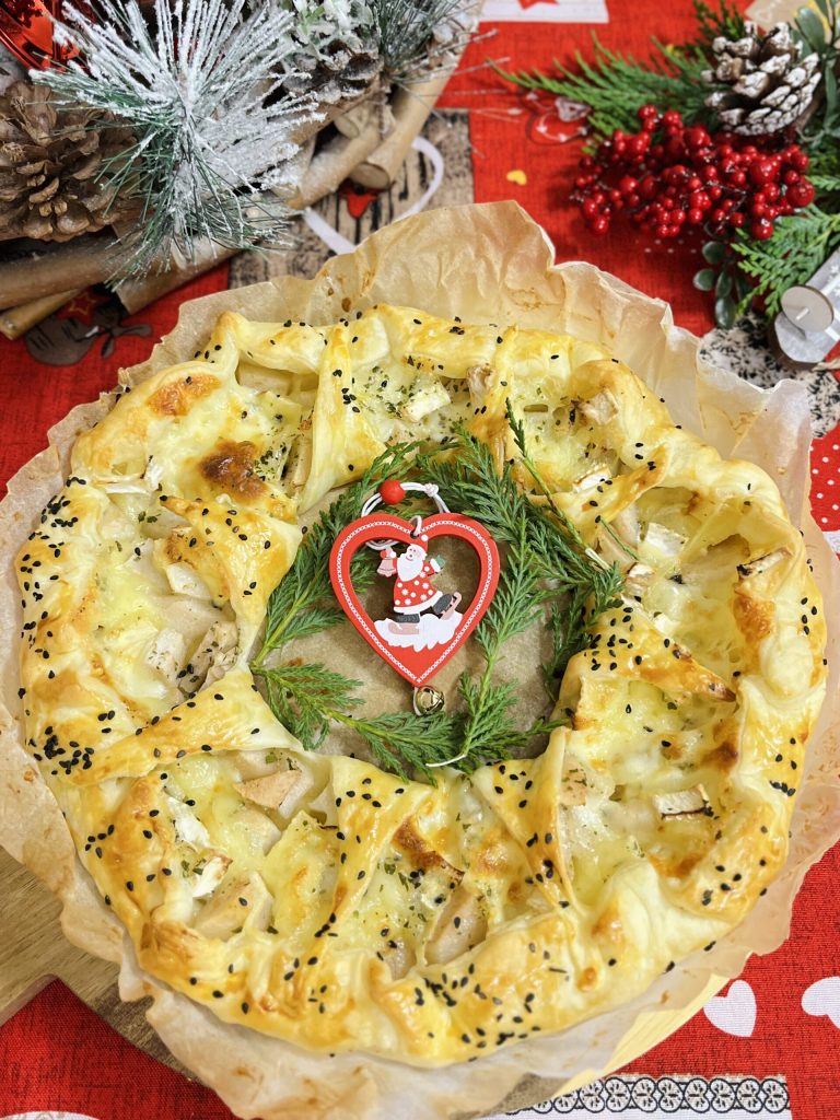 Weihnachtlicher Gugelhupf mit Birnen und Käse. Ein sehr schmackhafter und besonders spektakulärer herzhafter Kuchen, perfekt als weihnachtlicher Tischmittelpunkt.