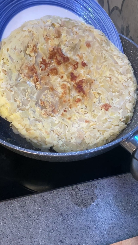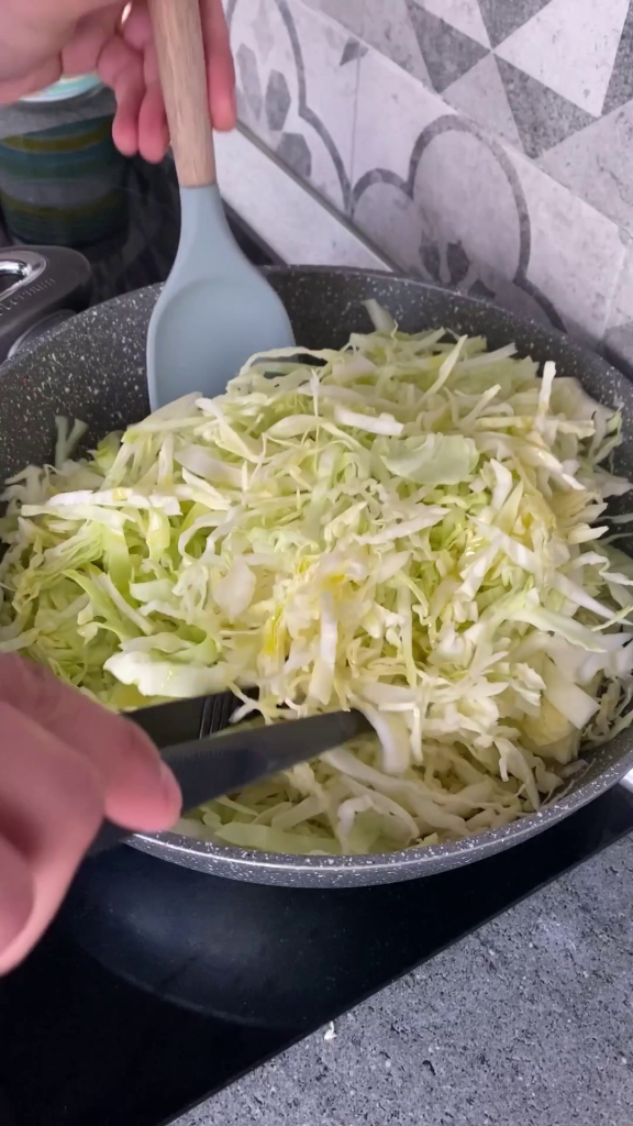 Anfangs dachte ich, dass es wenig appetitlich sein könnte, aber nachdem ich es gekocht hatte, war ich angenehm überrascht. Es war sehr einfach zu machen, man musste nur den fein geschnittenen Weißkohl zusammen mit etwas Öl, Salz, Wein und Wasser dünsten, um dann das Omelett mit der Zugabe von geschlagenen Eiern mit Salz und geriebenem Parmesan zu kreieren.