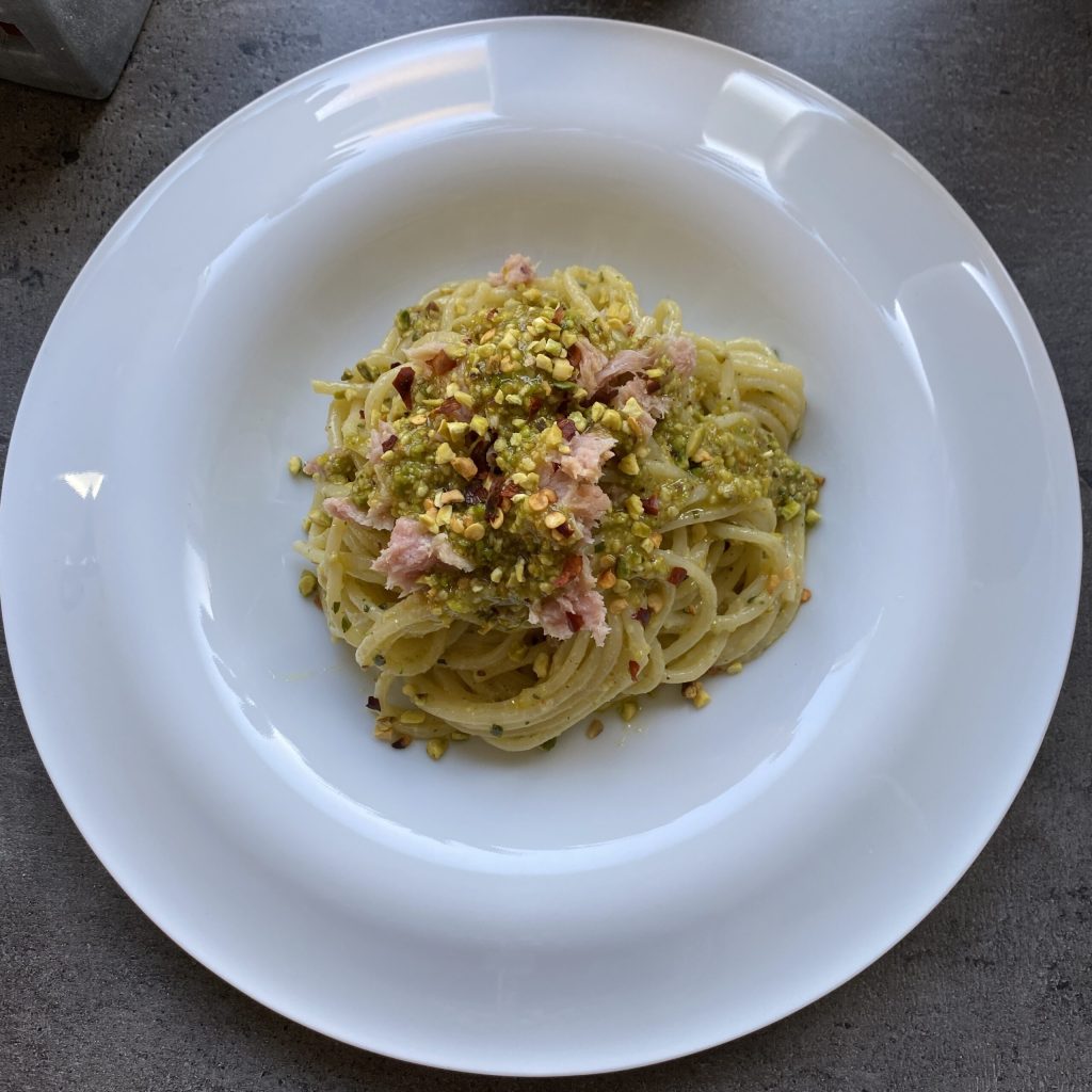 Die Spaghetti mit Pistazienpesto und Thunfisch sind ein Gericht, das deinen Gaumen kitzeln und erfreuen wird. Einfach, lecker und leicht zuzubereiten mit wenigen Zutaten. Ich mag auch die Variante mit Garnelen sehr, die ebenso unverzichtbar ist!