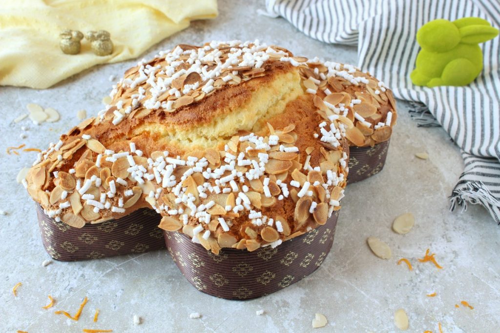 Das Rezept erfordert keine Gehzeit, da Soforthefe verwendet wird; der Vorgang ist genau der gleiche wie bei einem schnellen, hohen und sehr fluffigen Kuchen, der im Geschmack (sowie in der Form natürlich) stark an die klassische Ostertaube erinnern wird.