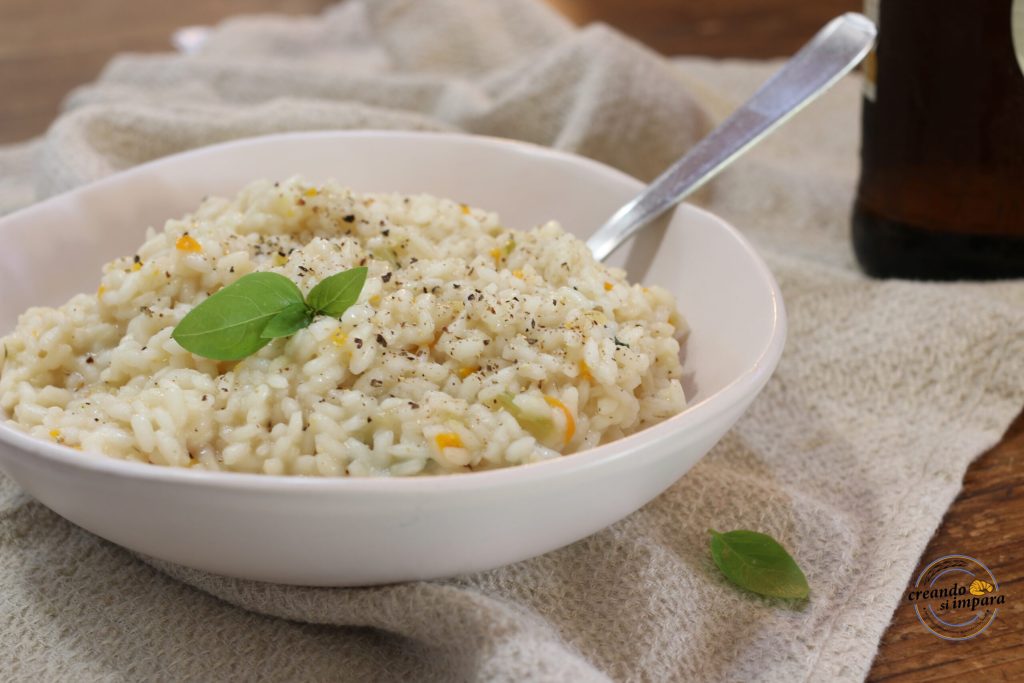 Ein Gericht mit ungewöhnlichem Geschmack, das sich anpassen lässt, indem man sein Lieblingsbier verwendet. Das Bierreis ist wirklich einfach. Bei uns zu Hause lieben wir Risotto, cremig und umhüllend. Die Zubereitung erfordert eine gewisse Sorgfalt und, vielleicht nur in meinem Kopf, eine gute Portion Liebe. Ich habe inzwischen Risotto mit allem möglichen gemacht, aber mit Bier hat es mir noch gefehlt, und ich musste es probieren. Es hat wirklich sehr gut geschmeckt.