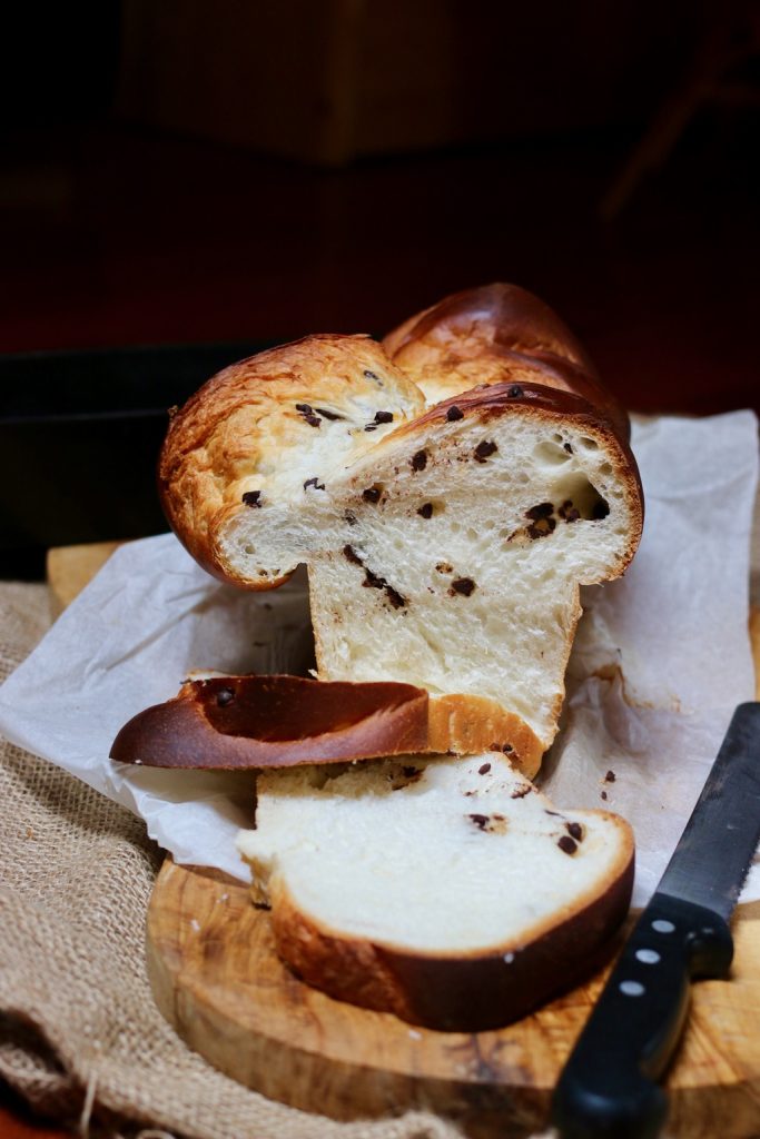 Ich habe mich verliebt. „Schon wieder?“ werdet ihr sagen! Ja, schon wieder. Jedenfalls hatte ich diese Eiweiße nach der allgegenwärtigen Puddingcreme übrig, und die Brioche fürs Frühstück war alle. So entstand die Brioche mit nur Eiweiß und Schokotropfen und was für eine Köstlichkeit dabei herauskam. Super fluffig, genau wie ich es mag. Wenn du fluffige Brioches magst, probiere die geflochtene Brioche, sie ist wirklich sehr gut.