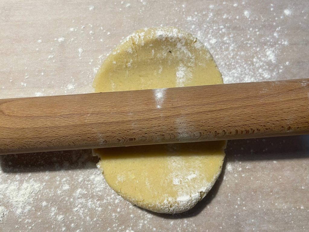 In einer Schüssel das gesiebte Mehl, die weiche Butter, den Zucker, ein Ei und das Salz geben. Schnell verarbeiten, bis ein glatter Teig entsteht, den wir mit dem Abrieb einer Orange parfümieren. Den Mürbeteig in Frischhaltefolie wickeln und 30 Minuten im Kühlschrank ruhen lassen. Dies macht ihn viel bröseliger.