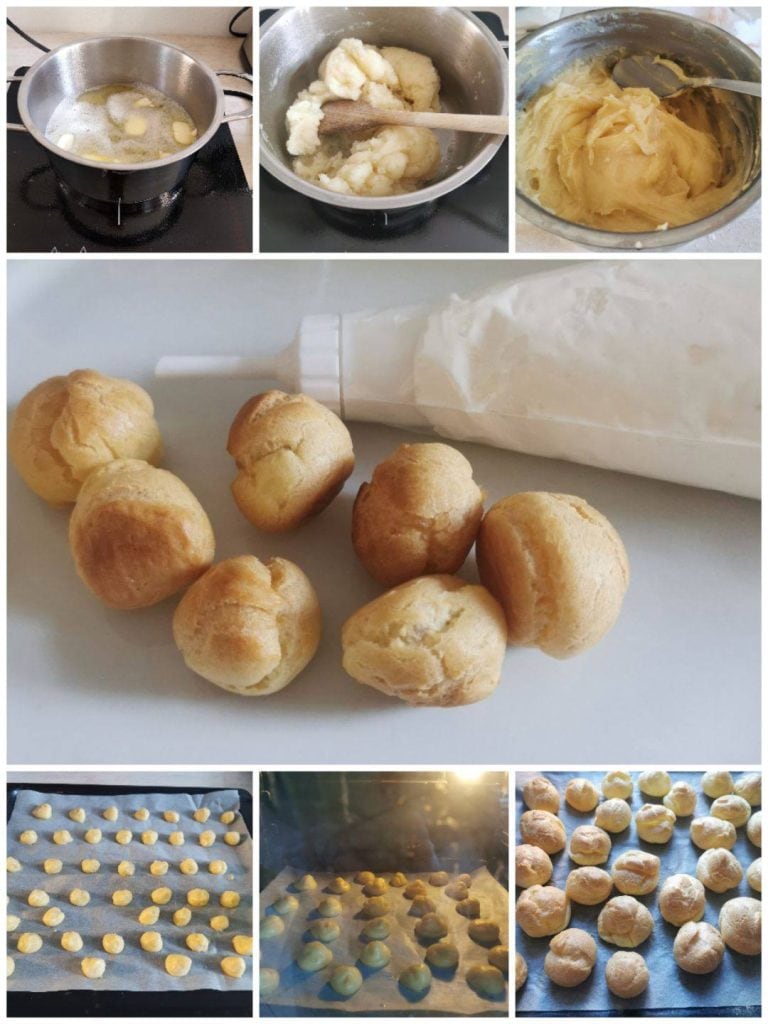 Bereiten wir die Profitürmchen vor oder kaufen Sie die bereits fertigen. Dann füllen wir die Basen mit Konditorcreme, indem wir sie von unten mit einem Spritzbeutel einfüllen.