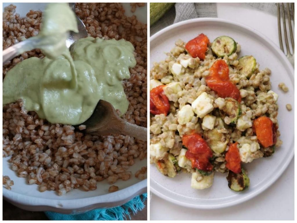 Ein sehr einfaches Rezept zuzubereiten, es eignet sich für viele Varianten, wartet einfach, bis der Dinkel gemäß den Packungsanweisungen gekocht ist, dann bereiten wir das Dressing vor, in diesem Fall Feta, Aprikosen und gegrillte Zucchini. Alternativ könnt ihr als Käse den Primo Sale verwenden und statt Zucchini rote und gelbe Paprika, um einen Hauch von Frische zu verleihen, fügt Rucola oder frische Minze hinzu und würzt alles mit ein wenig Olivenöl extra vergine und einer Prise Salz und Pfeffer. Viel Spaß…..