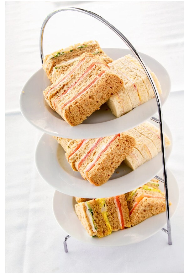 Sie werden oft während des Afternoon Teas serviert, der am Nachmittag stattfindet, und auf schönen Etagèren präsentiert, die wie folgt zusammengestellt sind: auf dem ersten Teller von unten sind die herzhaften Sandwiches.