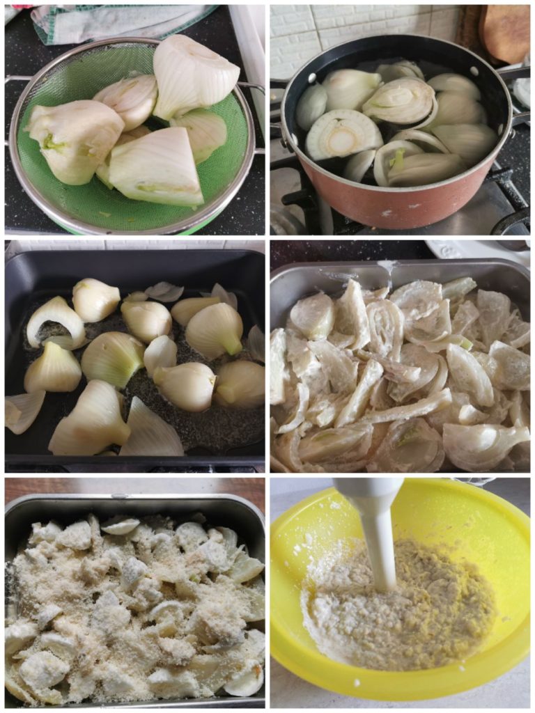 • Beginnen wir damit, den Fenchel gründlich zu waschen, dann entfernen wir die Enden und schneiden ihn in ziemlich grobe Stücke. Wir nehmen einen Topf, füllen ihn mit Wasser und tauchen die Fenchelstücke ein, lassen sie 20 Minuten kochen. Wir lassen sie abtropfen und geben sie in eine Backform mit einem Stück Butter, dem Ricotta und geriebenem Parmesan. Wir geben sie bei 170° für etwa 20 Minuten in den Ofen, danach pürieren wir sie, bis sie ein Püree werden.